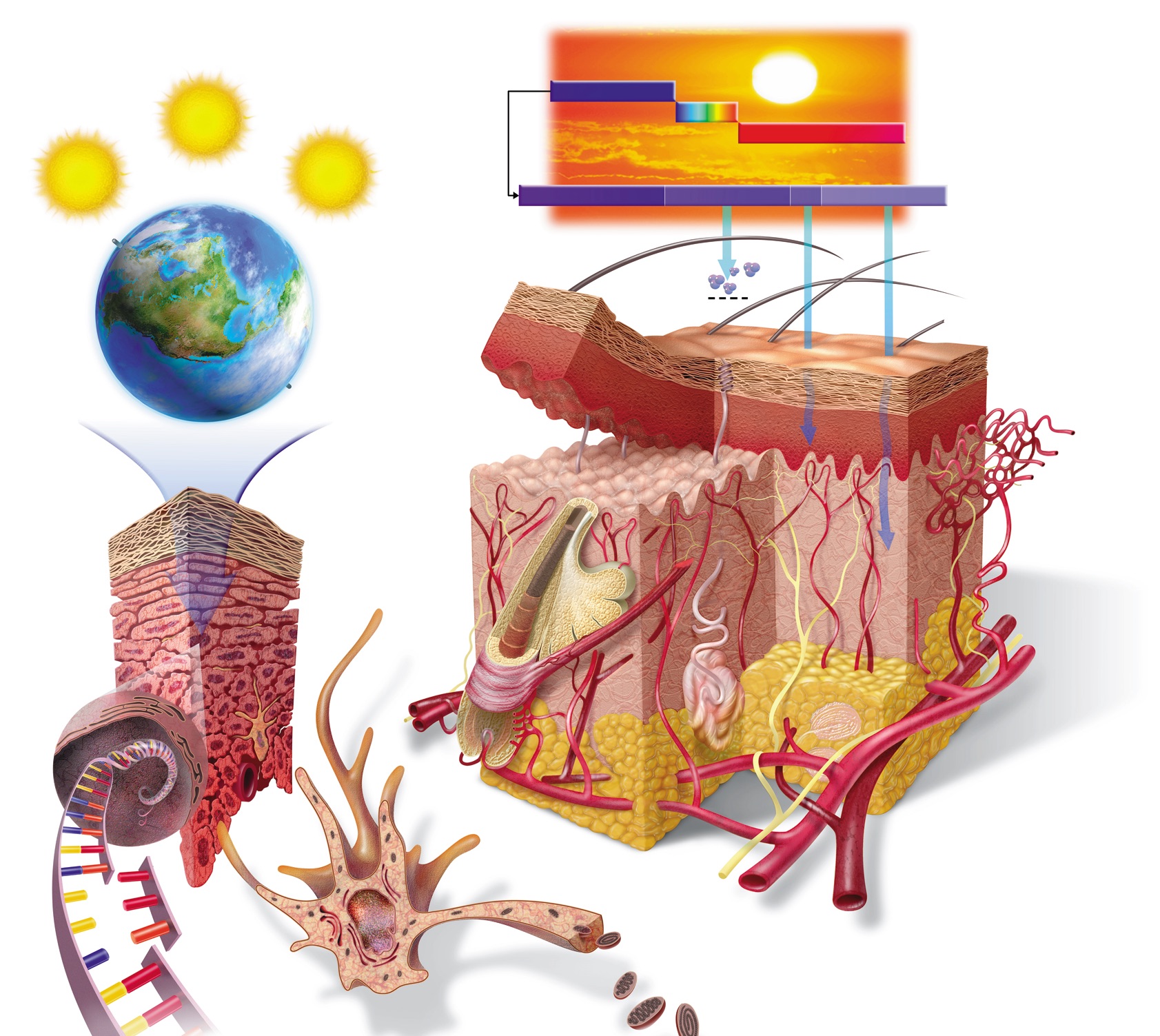Scientific research about the risk of sun exposure states the facts loud and clear.  Burning is detrimental to healthy skin. It is a visible indication that DNA damage has resulted from excessive exposure to Ultraviolet Light (UVL) that is radiation. The wavelengths of sunlight vary in depth. UVA penetrates more deeply into the skin’s dermis and UVB penetrates only to the epidermis, where it ignites the production of pigment granules called melanin.  In some cases the production is normal and you develop a tan evenly. However in others damage to pigment producing cells called Melanocytes creates an imbalance flow.