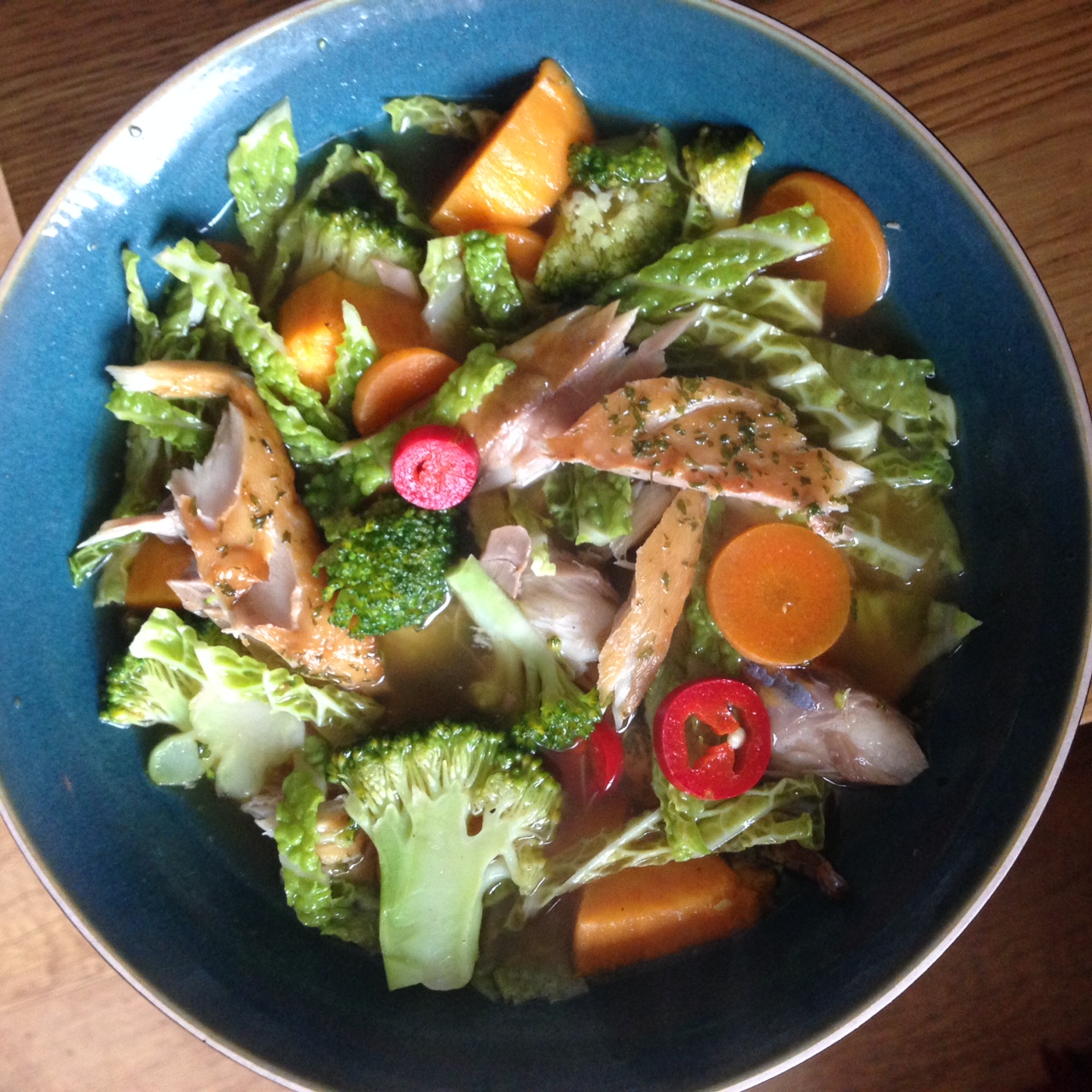 Lunch – Either a homemade soup, made with bone broth and vegetables or a salad of some sort.